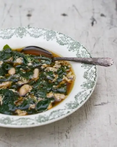 Aqui está uma receita farta de ensopado italiano que envolve vegetais saborosos: contém alcachofras picantes e lentilhas saudáveis em caldo de tomate com alho. A couve toscana de folhas escuras traz nutrientes e absorve o caldo cheio de sabor. Para fazer uma refeição, sirva com pão artesanal crocante e decore com queijo Pecorino Romano ou parmesão. É uma refeição farta repleta de proteínas vegetais.