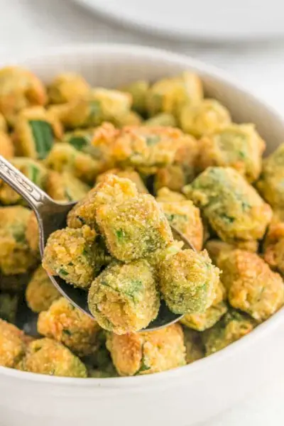 Como fazer quiabo deliciosamente crocante? Experimente na fritadeira! O sabor do quiabo é levemente adocicado e terroso e combina perfeitamente com molhos ricos e saborosos. Experimente como quiabo frito empanado ou como batata frita crocante de quiabo sem empanar! através de Uma perspectiva picante