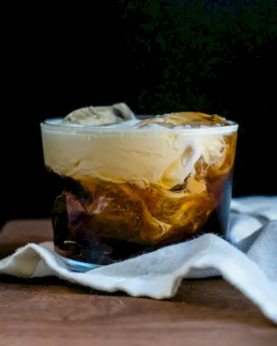 Aqui está um coquetel de café que leva 2 minutos para fazer e acerta em qualquer estação: o White Russian! Esta bebida alcoólica de café mistura vodka com licor de café e creme em uma bebida decadentemente cremosa e extremamente doce. Você pode conhecê-la pelo filme The Big Lebowski, dos anos 1990, mas esta bebida é um clássico que existe desde os anos 1950.