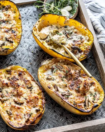 Crédito da foto: www.wellplated.comAbóbora Espaguete Assada com Cogumelos Parmesão