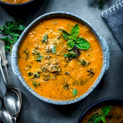 Já experimentou espaguete... como sopa? Esta sopa cremosa e saborosa apresenta macarrão naturalmente sem glúten com acelga, cenoura e aipo em um caldo à base de tomate com ervas. Uma sopa aconchegante para o outono e inverno! através de Cozinha lotada