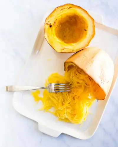 - Cozinhe o espaguete: Faça Abóbora Espaguete Assada ou Abóbora Espaguete Instantânea .