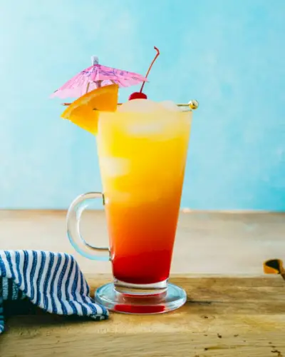 Aqui está uma bebida brilhante, visualmente deslumbrante e com um sabor deliciosamente tropical: o Malibu Sunset! Este coquetel em camadas traz a festa com rum de coco, suco de abacaxi e suco de laranja. Adicione grenadine e faça camadas no gradiente das cores de um pôr do sol! Pode parecer intensamente doce, mas é adoçado apenas o suficiente, com um final frutado de coco.