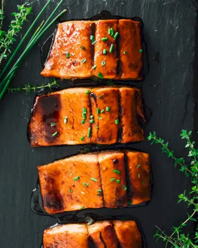 Precisa de um molho fácil para salmão durante a semana? Experimente este salmão glaceado com bordo! O peixe fica perfeitamente macio e escamoso, o melhor? É generosamente espalhado com um esmalte balsâmico de bordo doce e picante. É tão saboroso e leva apenas alguns minutos para cozinhar na grelha.