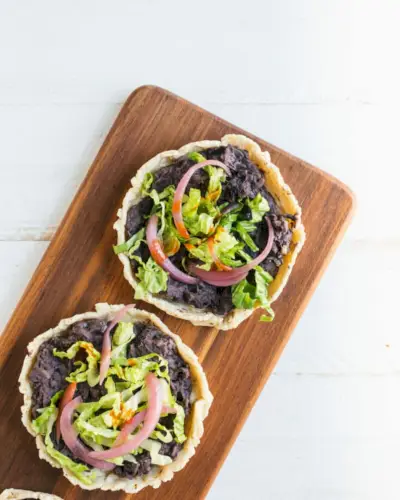 O que são sopas? Sopes são uma espécie de tortilha grossa com bordas viradas para cima, coberta com carne, feijão e molhos. Na verdade, são muito simples de fazer em casa, não tão complicados quanto fazer tortilhas caseiras. As tortilhas podem ser difíceis de prensar, mas as sopas são intencionalmente mais grossas e fáceis de prensar. Espalhe com feijão preto refogado ou Feijão carioca e polvilhe com cebola em conserva rosa brilhante e um pouco de alface crocante. Então jogue fora com creme de coentro e limão , Creme mexicano ou creme de caju . Delicioso!