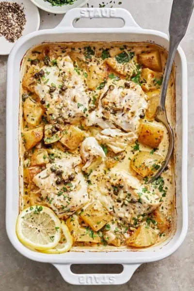 Crédito da foto: themodernproper.comBacalhau e Batatas em Molho Creme de Alecrim