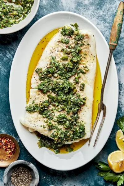 Crédito da foto: themodernproper.comBacalhau Assado com Tapenade de Salsinha e Azeitona