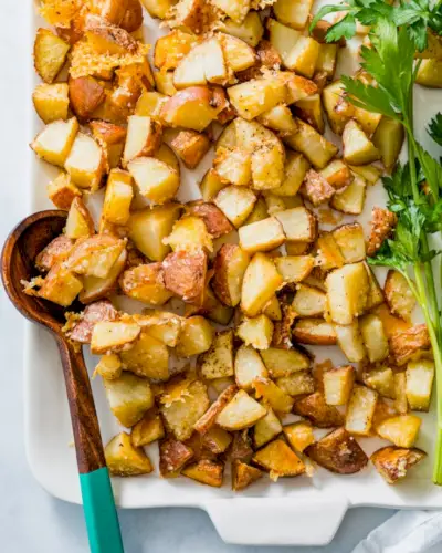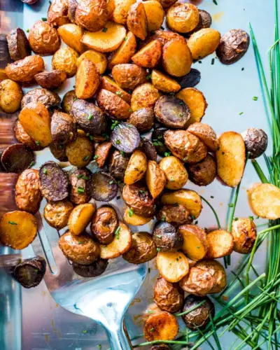Por que amassar batatas quando você pode assá-las até ficarem crocantes e douradas? Sempre gostamos de batatas crocantes por fora e macias por dentro. Aqui mostraremos como fazer nosso acompanhamento de batata favorito: Batatas Assadas Clássicas! São batatas vermelhas assadas no forno, assadas até ficarem crocantes com alho em pó e depois regadas com ervas frescas.