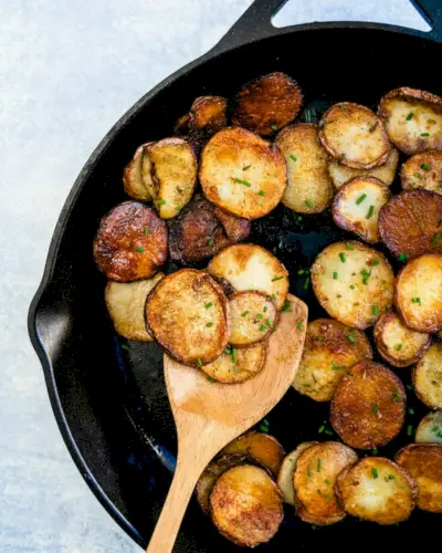 Você já desejou uma frigideira com batatas fritas perfeitamente douradas? Apresentando as Batatas Fritas Perfeitas! Essas rodelas finas de batata são douradas em uma frigideira até ficarem crocantes e douradas. E o tempero é perfeito: na quantidade certa de defumado, salgado e salgado.