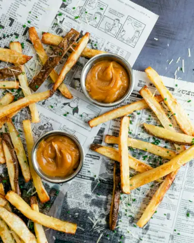 Esta receita de batatas fritas com trufas de parmesão é um acompanhamento de batata incrível! O sabor é tão bom quanto o das batatas fritas de restaurante, com o toque sutil certo de trufa terrosa. São crocantes por fora, macios por dentro, perfeitamente salgados e misturados com queijo para levar por cima. Você se sentirá tão sofisticado que não saberá o que fazer consigo mesmo! Como grandes fãs de trufas, ficamos maravilhados.