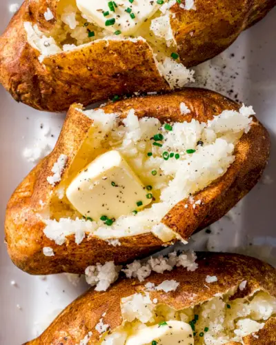 Quando se trata de acompanhamentos de batata, não há nada como a Batata Assada. Caramba, também funciona como uma ideia fácil para o jantar! Encha-o com coberturas e você terá um jantar farto. Veja exatamente como assar uma batata no forno: ela fica crocante por fora, fofa por dentro e ideal para carregar com coberturas de todos os tipos! A maneira mais fácil? Coloque creme de leite e cebolinha.