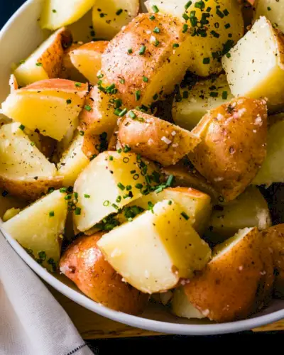 Procurando um acompanhamento de batata clássico e saboroso que exija pouco esforço? Experimente estas Batatas Vermelhas Cozidas com Ervas! Essas batatas saborosas podem parecer básicas, mas o sabor é tudo menos isso. Eles ficam perfeitamente macios com uma polpa cremosa que combina perfeitamente com cebolinha fresca e manteiga. É um acompanhamento simples isso combina com quase tudo, desde frango a frutos do mar e pratos principais vegetarianos.
