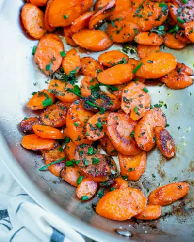 Estas são realmente as cenouras salteadas perfeitas! Acontece que eles também são muito simples! São as moedas de cenoura mais tenras, amanteigadas e saborosas, com um toque herbáceo de tomilho fresco e cebolinha. Têm o sabor das melhores cenouras que alguma vez comeste: mas têm apenas 3 ingredientes e demoram 10 minutos.
