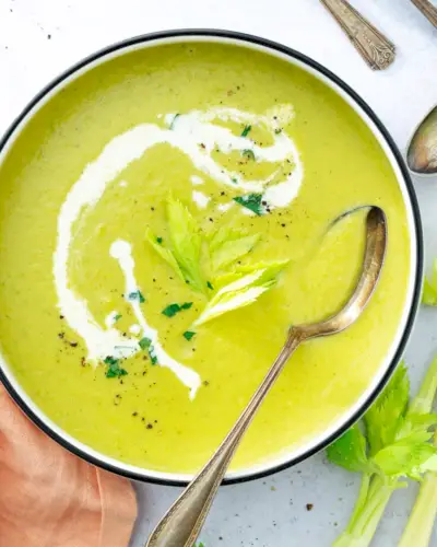 Aqui está uma divertida sopa de outono que vai surpreender a todos com seu sabor robusto e cor verde elétrica: Sopa Cremosa de Aipo! O nome pode parecer humilde, mas esta sopa é tudo menos isso. É deliciosamente saboroso e cremoso, com o sabor fresco e herbáceo do aipo e da salsa contrastando com batatas caseiras e creme rico.