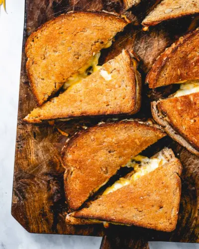 Esta é uma maneira de fazer com que o queijo grelhado pareça uma ideia mais sofisticada para o jantar... experimente o Queijo Grelhado no Forno! Nunca é divertido cuidar de uma frigideira enquanto você prepara queijo grelhado na hora. Acenda seu forno! O queijo grelhado assado sai derretido e dourado. Algumas ideias para crianças? Adicione algumas maçãs em fatias finas para um toque divertido, doce e salgado, ou adicione um bocado de pesto.