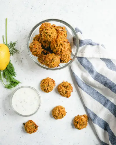 Bolos de salmão podem não parecer um jantar para crianças, mas nosso filho de 4 anos os inala! Eles são feitos com salmão enlatado, o que os torna rápidos e fáceis de preparar – e mais baratos do que salmão fresco. Combine-os com molho tártaro ou remoulade , e o contraste dos hambúrgueres crocantes e com aroma de ervas com o molho cremoso é irreal. Este foi um grande sucesso em nossa casa, especialmente com nosso filho de 4 anos. Quem diria que bolos de salmão são comida infantil perfeita?