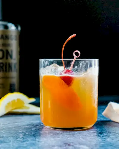 - Enfeite: Casca de laranja ou limão e uma cereja de coquetel