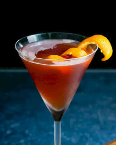 Vamos passar para as bebidas de uísque escocês! O coquetel Blood and Sand é um dos poucos coquetéis escoceses clássicos e oferece suco de laranja sanguínea e licor de cereja. Recebeu o nome do filme mudo de 1922 sobre um toureiro chamado Sangue e Areia . A ligação natural? O suco de laranja sanguínea, claro! Em vez de picante e alcoólico como a maioria dos coquetéis escoceses, é exatamente o oposto! É leve e semidoce, com sabor equilibrado e de cereja.
