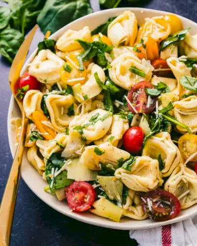 Aqui está uma receita de verão ultra versátil para piqueniques, churrascos e uma ideia fácil para o almoço: Salada de Tortellini! O sabor forte da alcachofra, da massa fofa e fofa, do tomate vigoroso e do manjericão apimentado se unem em uma sinfonia de sabores! Melhor ainda, pode ser guardado até 4 dias na geladeira, sendo um almoço perfeito e fácil.