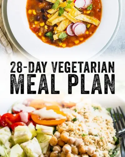 Este plano de refeições vegetarianas é ideal para você se você é vegetariano! As receitas deste plano de refeições vegetarianas incluem receitas vegetarianas e veganas. Para um plano de refeições totalmente vegano, vá para Plano de refeições veganas de 28 dias ou Plano de refeições dietéticas à base de plantas . Se você também come peixe, acesse nosso Plano de refeições saudáveis , Plano de refeições da dieta mediterrânea ou Plano de refeições pescatarianas .