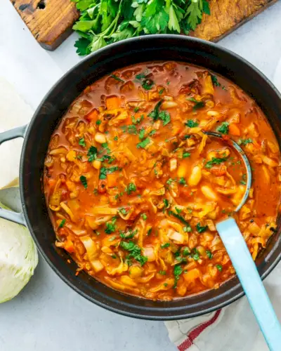 Procurando por um sabor cheio sopa saudável ? Experimente esta receita fácil de sopa de repolho! Embora seja humilde, o repolho faz pratos incrivelmente satisfatórios, vestidos como repolho refogado ou salada de repolho . Aqui é feita uma sopa farta e satisfatória, recheada de vegetais que nadam em um caldo saboroso e apimentado de tomates assados no fogo.
