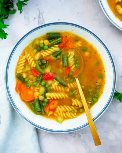 Esta sopa de vegetais de jardim é como uma sopa enlatada, mas infinitamente melhor! É uma das nossas receitas favoritas de sopa vegetariana porque é aconchegante e reconfortante, e todo mundo adora. A receita é muito simples e traz um caldo saboroso e muitos vegetais de cozimento rápido.