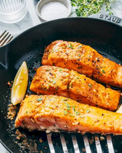 Aqui está uma receita de salmão que todo cozinheiro deve saber: como fazer salmão grelhado básico! Esta é uma das melhores maneiras de cozinhar salmão rapidamente porque é rápido, fácil e resulta em um sabor incrível. Muitas vezes fazemos salmão assado, mas é muito mais rápido selar na frigideira: além disso, você obtém a crosta crocante perfeita no salmão. Para nós, isso é um obstáculo! Também deixa o forno livre para assar alguns vegetais como acompanhamento.