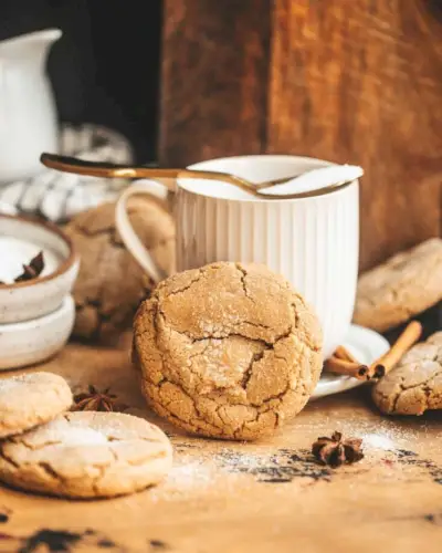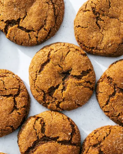 Esses biscoitos de melaço... são algo especial. Esta receita faz biscoitos macios e mastigáveis com um exterior crocante de açúcar, infundidos com especiarias aconchegantes e ousadas. Cada um deles é fraturado em rugas perfeitas e, quando você afunda os dentes na primeira mordida, é como ser envolvido em um abraço caloroso.