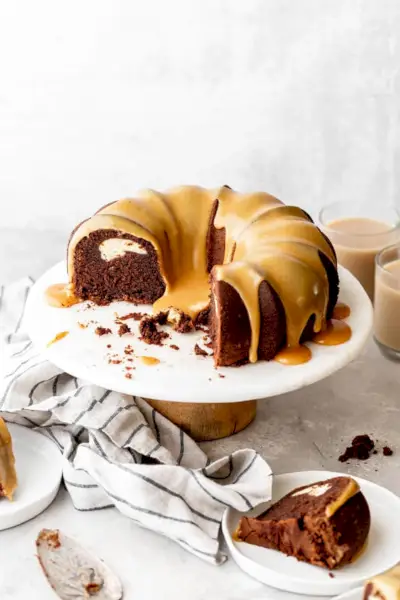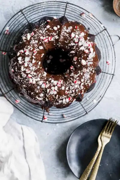 Por último em nossas ideias de sobremesas de Natal: você adora Baileys? Este Bolo Bundt de Chocolate Baileys é úmido e achocolatado e é recheado com uma surpresa: um recheio de cream cheese com sabor de creme irlandês. Através Bolos De Vovô