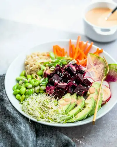 Quer comer uma receita de jantar vegano e tem suas poke bowls também? Essas populares refeições saudáveis estão na moda. Poke é uma especialidade havaiana, normalmente feita com atum ahi cru, marinado e servido com muitos vegetais e molhos saborosos. E se você não comer peixe? Nós temos um à base de plantas alimentícias integrais (WFPB) versão para você: poke bowls veganos! Essas tigelas saborosas estão repletas de sabor e têm um ingrediente incomum que surpreendentemente dá a mesma textura e sabor do poke.