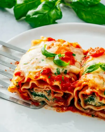 Prepare uma panela de Roll Ups de Lasanha! Esta versão única do icônico prato italiano é uma maneira divertida de dar um toque especial ao jantar. Esta receita apresenta um reconfortante recheio vegetariano de espinafre, manjericão e ricota, coberto com molho de tomate caseiro fácil e com alho. Enrole o macarrão e cubra-o com queijo mussarela derretido, e é divertido, agrada a todos receita de jantar .