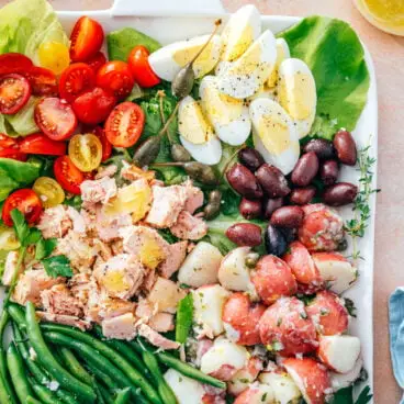 A salada Nicoise é um prato principal francês farto e satisfatório! Esta colorida receita mediterrânea é ideal para qualquer hora.