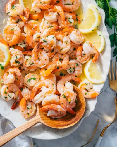 Precisa de um jantar rápido e fácil? Aqui está uma ideia tão rápida, simples e cheia de sabor que em pouco tempo se tornará a favorita da família: esta receita de Camarão com Alho! É incrível o que um pouco de alho, manteiga e suco de limão podem fazer por uma pilha de camarões. Jogue-os na panela e fará mágica absoluta em menos de 15 minutos de preparação!