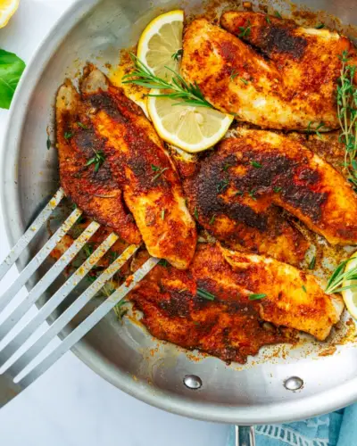 Procurando uma receita de jantar rápido? Experimente esta Tilápia Enegrecida! Esta técnica Cajun para cozinhar frutos do mar e carnes proporciona um sabor de restaurante em minutos, ideal para refeições rápidas e fáceis. Tempero enegrecido tem uma intriga saborosa e forma uma crosta crocante e escurecida na parte externa do peixe.