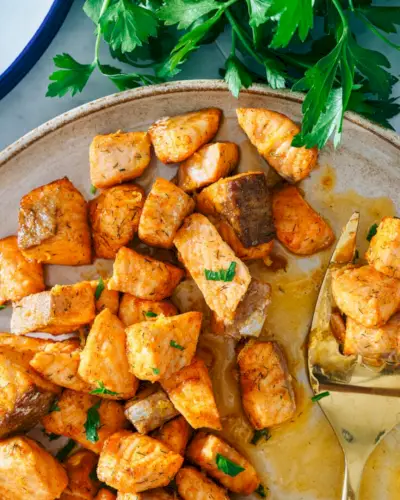 Procurando uma maneira divertida de preparar o jantar? Experimente esta receita de mordidas de salmão! O salmão fica saboroso em filé e tudo, mas você já experimentou cortá-lo em pedaços antes de cozinhar? Faz petiscos perfeitamente temperados, simples de comer e perfeitos para acompanhar arroz ou salada.