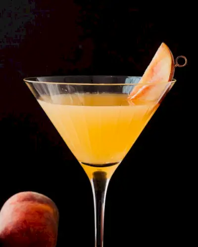 Ama o sabor suculento dos pêssegos? Então você vai adorar este frutado Martini de Pêssego! Aqui, você usará um ingrediente especial para trazer aquele sabor característico: aguardente de pêssego! Acontece que é a maneira certa de infundir sabor de pêssego em uma bebida: e você pode usá-la em qualquer época do ano