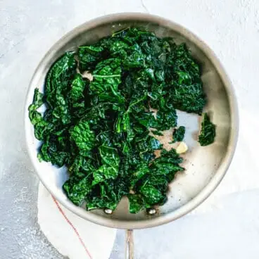 - Retire do fogo e adicione o sal kosher e vários grãos de pimenta fresca moída. Descarte os dentes de alho e sirva imediatamente. (Se desejar, você pode adicionar suco de limão ou parmesão: mas nenhum dos dois é necessário com o sabor doce da couve toscana! Você pode considerá-los se usar couve crespa.)