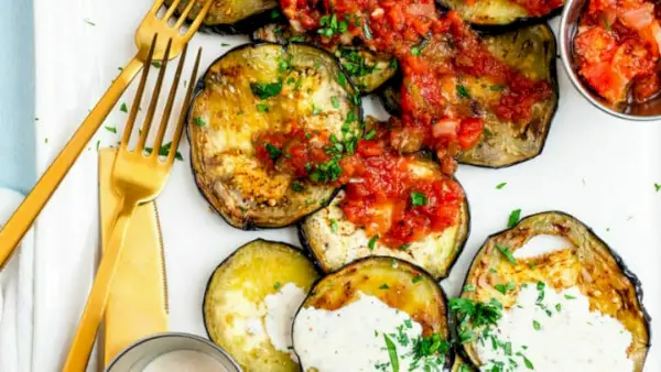 Você tem que experimentar esta berinjela grelhada: ela sai esfumaçada e macia, levemente carbonizada e cheia de sabor. Cubra com um molho e você terá um acompanhamento ou aperitivo matador de verão! Experimente com um tomate fresco molho fresco ou um cremoso e levemente picante molho de churrasco branco .