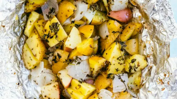 Quer um acompanhamento grelhado fácil que você não precisa nem um pouco? Experimente estas batatas grelhadas em papel alumínio! :Configure e esqueça com este. Jogue essas batatas e cebolas em um pacote de papel alumínio e em 30 minutos estará pronto!
