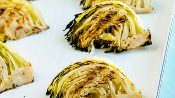Acontece que, vale a pena experimentar repolho grelhado! Fica macio e carbonizado, o sabor muito mais doce do que o cru. Regue com um molho balsâmico picante e é um acompanhamento saboroso para uma refeição grelhada!