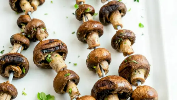 De todos os legumes grelhados , os cogumelos podem ser os melhores. Você pode obter um sabor forte sem precisar marinar: basta misturá-los com azeite, suco de limão e ervas. Jogue-os em espetos e grelhe até ficarem macios.