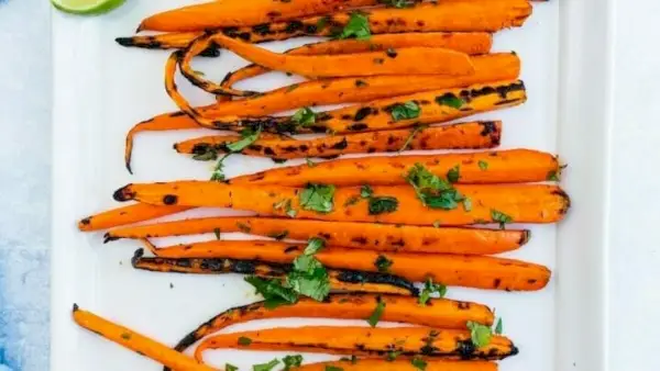 Claro, a grelha traz um sabor lindamente adocicado a essas cenouras grelhadas! Misturado com suco de limão, coentro e cominho, este vegetal saudável foi uma delícia excelente! Coma como aperitivo, pois são melhores como petiscos, ou experimente-os como acompanhamento.