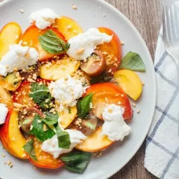 - Sirva em um Receita Fácil de Burrata com produtos sazonais