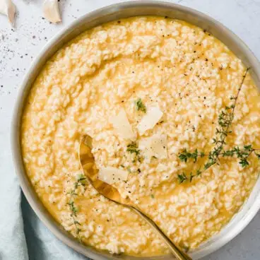- Informações de armazenamento: Sabor é o melhor dia. Você pode guardar as sobras refrigeradas por até 3 dias, mas a textura ficará menos cremosa quando resfriada. Reaqueça no fogão e acrescente um pouco mais de caldo e queijo parmesão e algumas pitadas de sal a gosto.