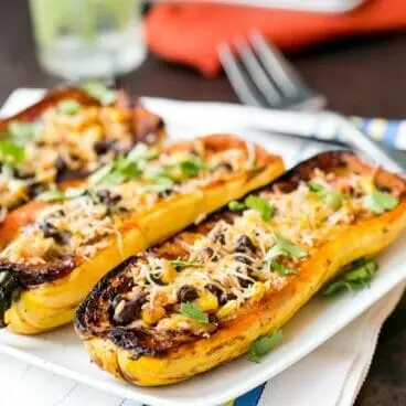 - Tentar Abóbora Delicata Recheada com Feijão Preto Chipotle ou Abóbora Delicata Recheada com Arroz Selvagem
