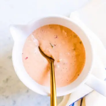 Então, o que é o molho russo? O molho russo é um molho americano feito de maionese, ketchup e alguns outros ingredientes saborosos. É o principal condimento de um sanduíche Reuben, que é o seu motivo de fama. É claro que, como você poderia esperar, não há nada de russo nisso! Foi inventado no início de 1900 na América.