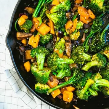 Esses vegetais salteados são incrivelmente saborosos e você se verá dando mordidas constantemente! Para servi-los como parte de um jantar saudável, adicione arroz (ou macarrão!) e uma proteína para mantê-lo cheio . Alex e eu comemos principalmente vegetais regularmente e percebemos que apenas comer vegetais não resolve. Você precisará de algum tipo de proteína vegetal para ajudar a mantê-lo saciado. Aqui está o que recomendamos: