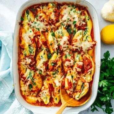 Como acontece com qualquer prato italiano, esta receita de conchas recheadas depende da qualidade dos ingredientes para um ótimo resultado. Acima de tudo, sugerimos fazer o seu próprio molho de tomate com tomates assados no fogo. Embora você possa usar marinara comprada, um molho de tomate caseiro realça os sabores! Aqui estão algumas coisas que você deve ter em mente: