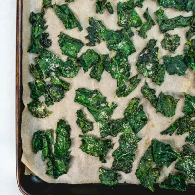 Por que não comer couve em forma de batatas fritas? Esses chips de couve satisfazem qualquer desejo de lanche salgado! São fáceis de fazer com couve toscana, que tem formato e sabor perfeitos. Eles ficam perfeitamente crocantes e satisfatórios. O único problema é que eles desapareceram num piscar de olhos!
