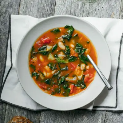 Apelidamos carinhosamente de sopa de pizza porque tem gosto de pizza líquida! Honestamente - esta sopa é deliciosa demais. Tomates saborosos, feijão branco e sabor toscano absorvem as delícias do caldo de pizza. Também leva erva-doce e páprica defumada, que conferem um sabor saboroso único.